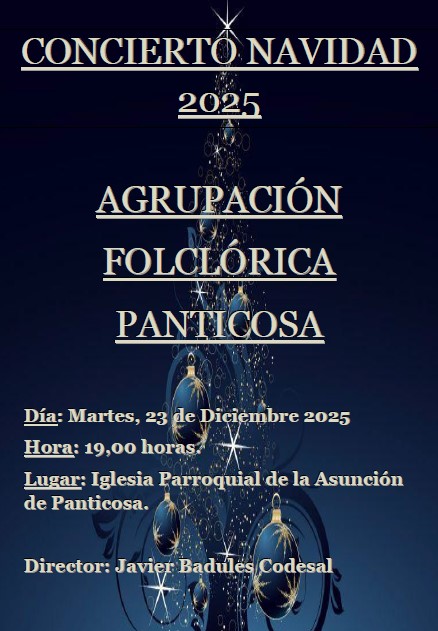 Iglesia de la Asunción de Panticosa Calle San Miguel, Panticosa, HuescaLa Agrupación Folclórica de Panticosa ofrecerá su tradicional Concierto de Navidad 2025 el próximo martes 23 de diciembre, a las 19:00 horas, en la Iglesia Parroquial de la Asunción de Panticosa. Una cita especial para disfrutar del folclore y la música tradicional, en un entorno único y en fechas tan señaladas. El concierto estará dirigido