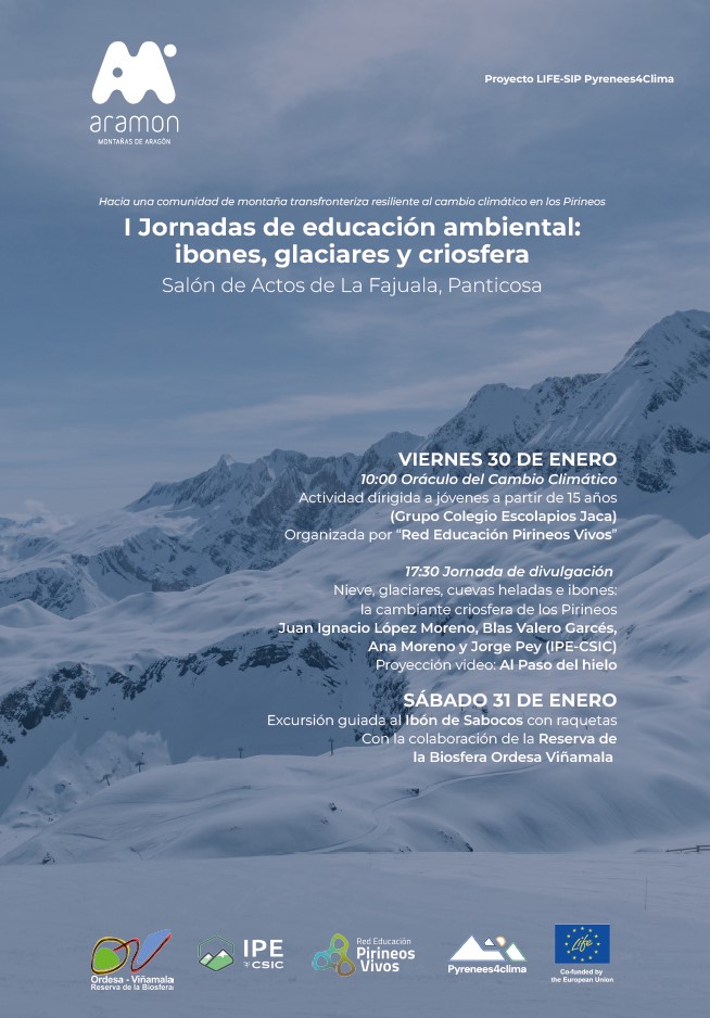 Centro Cultural La Fajuala Calle San Miguel, Panticosa, HuescaIbones, glaciares y criosfera en el Pirineo 📍 Sala La Fajuala – Panticosa Panticosa acoge las I Jornadas de Educación Ambiental dedicadas a la criosfera del Pirineo y a los cambios recientes que está experimentando como consecuencia del cambio climático. Un encuentro divulgativo que combina ciencia, divulgación y experiencia directa en la montaña, con la