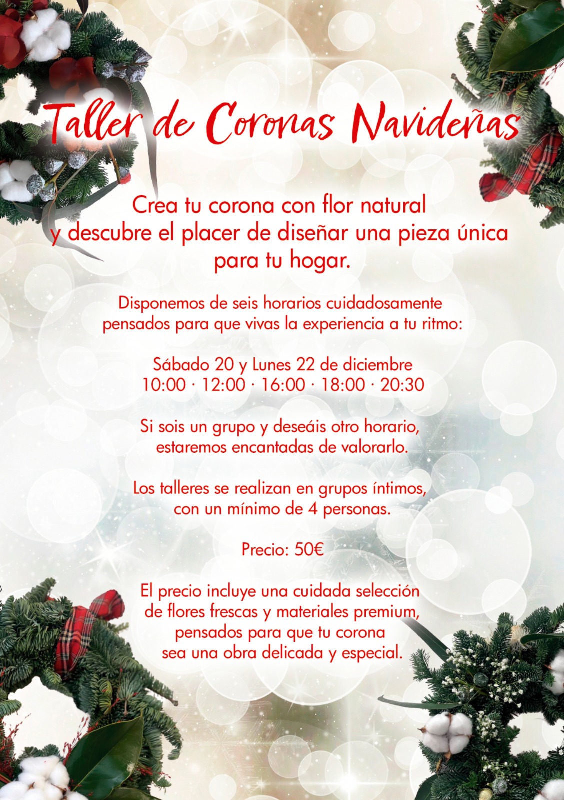 Crea tu corona con flor natural y descubre el placer de diseñar una pieza única para tu hogar.