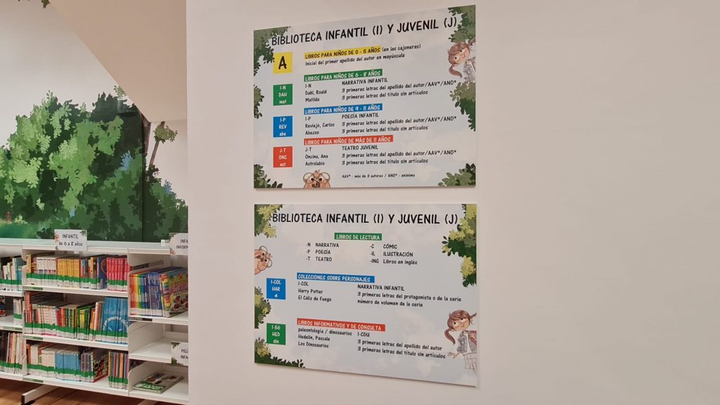 Además, cuenta con un rincón infantil con libros clasificados por edades y colores la mayoría de narrativa, algunos libros informativos, películas y una pequeña sección de narrativa en inglés.