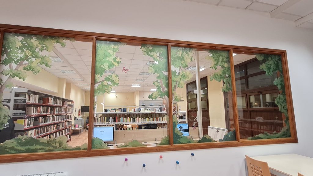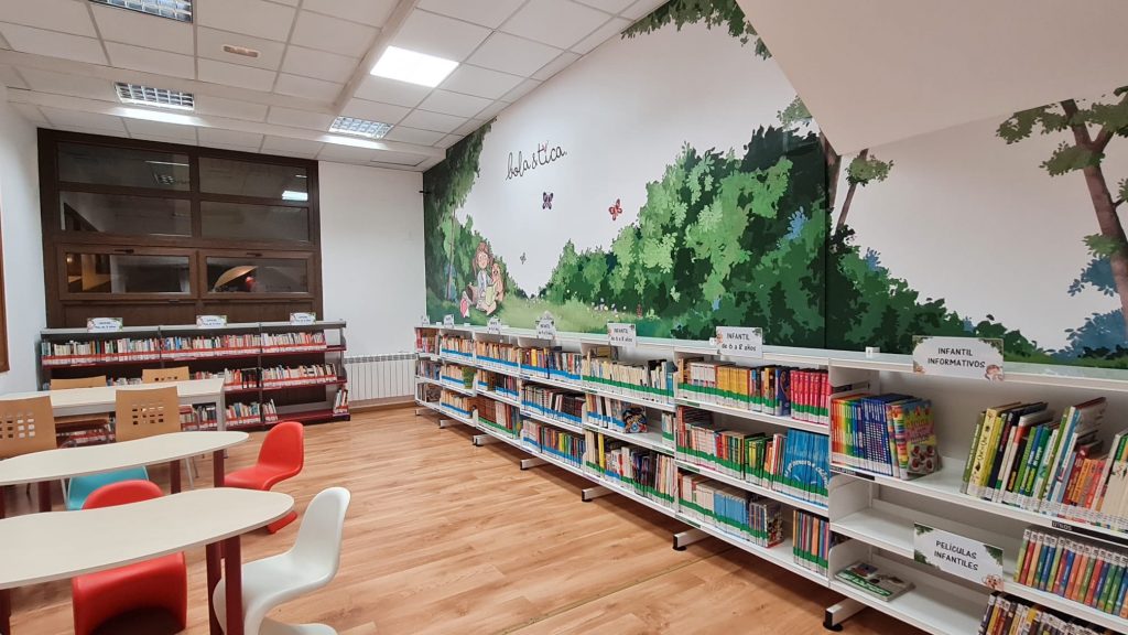 Una biblioteca con una amplia variedad de libros con un apartado para adultos con narrativa, poesía y teatro, fondo local de Aragón y Pirineos. Sección de películas y sección de narrativa en inglés.