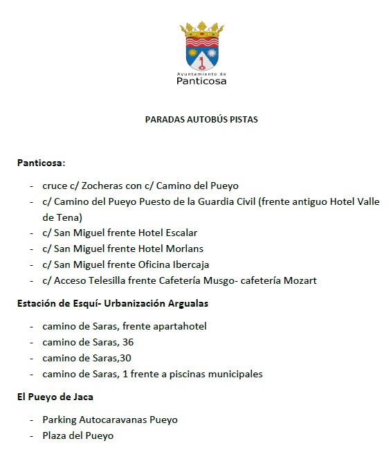 El horario de este bus cambia dependiendo de diferentes circunstancias a lo largo de la temporada de esquí por lo que os invitamos a que reviséis la información actualizada del bus a pistas en Panticosa – Pueyo de Jaca – Argualas 2026, aquí.